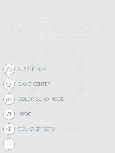 Hat man sich doch einmal verzettelt, hilft ein kleiner „Zurück“-Button, den falschen Schritt wieder ungeschehen zu machen. Wer besonders erfolgreich ist und das Level in einer vorgegebenen Anzahl von Zügen absolviert, erhält außerdem kleine Sternchen in der Level-Auswahl, die anzeigen, dass das Level perfekt abgeschlossen wurde. Zwei Zusatzpacks mit sehr schweren Puzzles und einem Bonuspaket mit unterschiedlichem Gameplay runden das wirklich gelungene Spiel ab. Für zusätzliche Motivation sorgt eine Anbindung an das Game Center, über das 14 Erfolge mit anderen Gamern geteilt werden können. Auch Farbblinde können von einem speziellen Modus Gebrauch machen, um Dwelp problemlos spielen zu können.