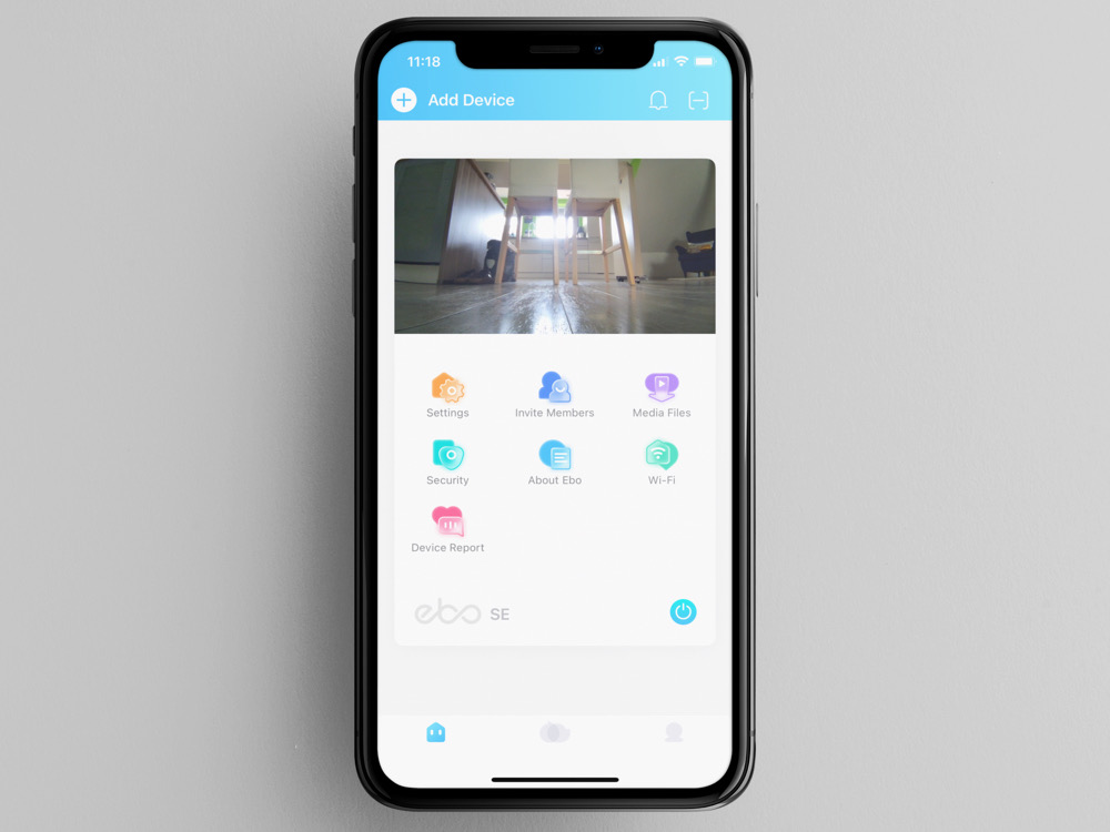 Die App selbst ist leider nur in englischer Sprache verfügbar und bietet dem Nutzer bzw. der Nutzerin die Möglichkeit, auf verschiedene Funktionen des Geräts zuzugreifen. Im Startbildschirm gibt es gleich ein Livebild von der Kamera des Roboters, zudem kann auch auf eine Steuerung zugegriffen werden, um den Ebo SE durch das Haus bzw. die Wohnung fahren zu lassen. Im Steuer-Screen finden sich darüber hinaus Möglichkeiten, ein Video oder Fotos von der jeweiligen Ansicht anzufertigen, und ist das Mikrofon aktiviert, kann direkt über den kleinen Roboter und seinen integrierten Lautsprecher gesprochen werden. Bei meinen Versuchen in den heimischen Wänden erfolgte die Ausgabe des Tons über den Lautsprecher 1-2 Sekunden verzögert. Hat man in den Einstellungen den Kollisionsschutz aktiviert, erkennt der Ebo SE auch Wände, Gegenstände und Treppenstufen und fällt so nicht herunter.