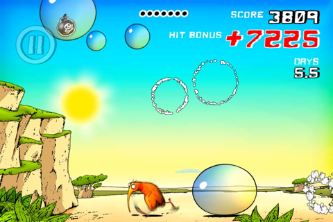 Nett gemacht ist der Tag-Nacht-Wechsel, viel wichtiger sind allerdings die Power-Ups. Sie verstecken sich immer wieder in den Luftblasen, halten die Zeit an oder lassen alle Blasen auf einmal explodieren. Die Highscores können selbstverständlich über das Game Center oder OpenFeint geteilt werden.