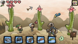 Dabei stehen die Helden anfangs „nackt“ zur Verfügung. Im unteren Bereich können die Kopfbedeckungen auf einen Helden gezogen werden, so dass er die entsprechenden Eigenschaften annimmt. Nur mit dem richtigen Helden lassen sich bestimmte Gegner bekämpfen, hat man den falschen ausgewählt, richtet man keinen Schaden an. Und genau hier liegt die Schwierigkeit des Spiels: Zuerst muss man schauen, was für ein Gegner vor einem steht, danach sollte man möglichst schnell den richtigen Helden kreieren.