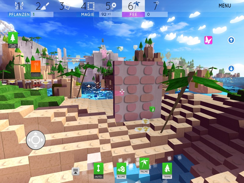 Was zunächst einiger Einarbeitung bedarf, ist das Menü und die Steuerung von Fairystone. Die Figur, mit der man die Welt erkundet und Aktionen durchführt, kann über einen kleinen Button am rechten oberen Bildschirmrand auch in die Höhe fliegen und sich dann fortbewegen. Für die Aktionen im Spiel sorgt eine Menüleiste im oberen Bereich des Screens, mit der sich unter anderem Pflanzen verteilen oder Bäume roden, aber auch Steine und Wände für den Bau eines Hauses aufrufen lassen. Und obwohl Fairystone auch grafisch und sound-technisch einiges anzubieten hat, ist vor allem der Einstieg in diesen Fantasy-Open World-Titel herausfordernd. Wir empfehlen einen Download daher vor allem für fortgeschrittene Gamer oder solche, die Erfahrung mit Spielen wie Minecraft haben.