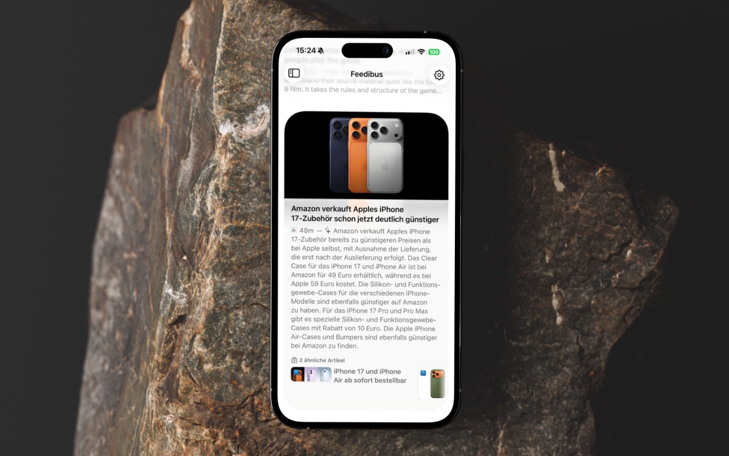 „Magic Summaries“ in Apple Intelligence wurde von Feedibus direkt nach dem Start von iOS 26 umgesetzt. Wird in Feedibus ein Artikel als „interessant“ für den Nutzer erkannt – um dies zu bestimmen, wird ebenfalls Machine Learning verwendet -, erzeugt die App automatisch eine kurze Zusammenfassung und stellt diese passend zur neuen iOS-Version einer Liquid Glass-Karte direkt in der Timeline dar. So bekommt man schnell einen Überblick über die Kerninhalte, etwa wenn einem der komplette Artikel, den man aber natürlich trotzdem noch lesen kann, zu lang ist.