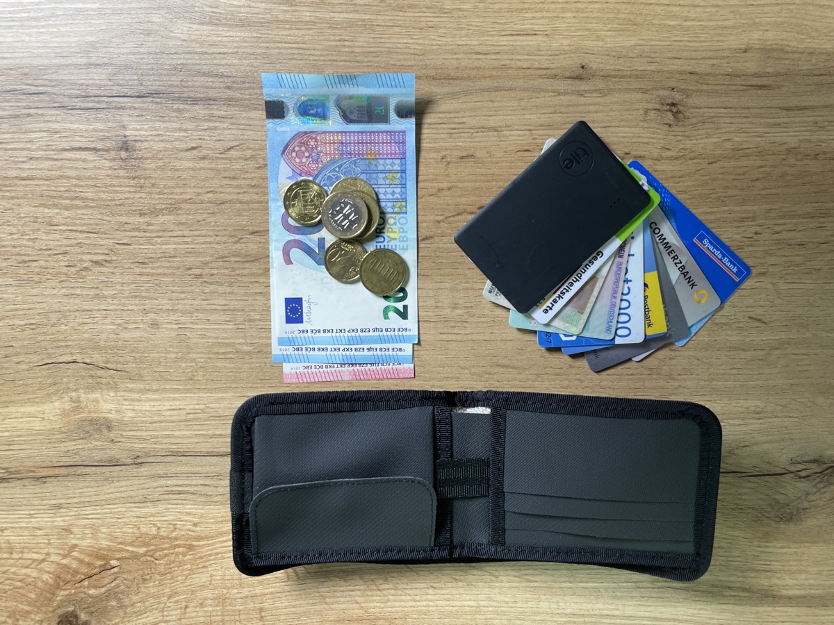 Seitdem habe ich ein Portemonnaie ohne Münzfach verwendet und war vom kompakten Design auch sehr angetan, es gab allerdings zwei Probleme: Selbst 20-Euro-Scheine mussten gefaltet werden und dann hat man halt doch immer ein bisschen Kleingeld gehabt, was in der Hosen- oder Jackentasche landete.
