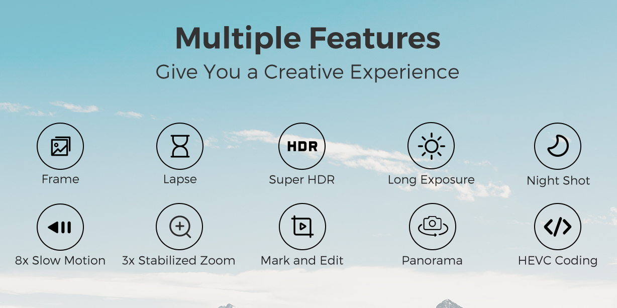 Neben verschiedenen Modi kann man die Kamera auch über einen Mini-Joystick direkt am Gerät steuern – das ist bei DJI nicht möglich. Ebenso werden Zeitraffer, Panorama, Slow Motion, Night Shot, Super HDR und mehr unterstützt.