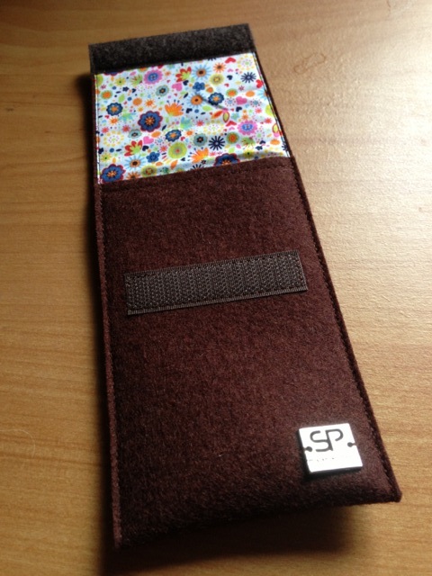 Insgesamt sind die Simon Pike-Taschen allesamt stilvoll und dezent designt, auch das Sidney-Sleeve für das iPhone 5 ist da keine Ausnahme. Die passenden Farbakzente finden sich eher auf der Innenseite der Tasche, nämlich im vernähten Innenfutter. Diese Schicht besteht in meinem Fall aus einem bunten Blumenmuster und ist hervorragend mit dem Filz vernäht. Auch der Verschluss, ein etwa 1cm breiter Klettverschluss, schließt gut und ist exakt aufgebracht. Das iPhone 5 lässt sich sehr einfach einlegen, die Maße sind perfekt gewählt worden.