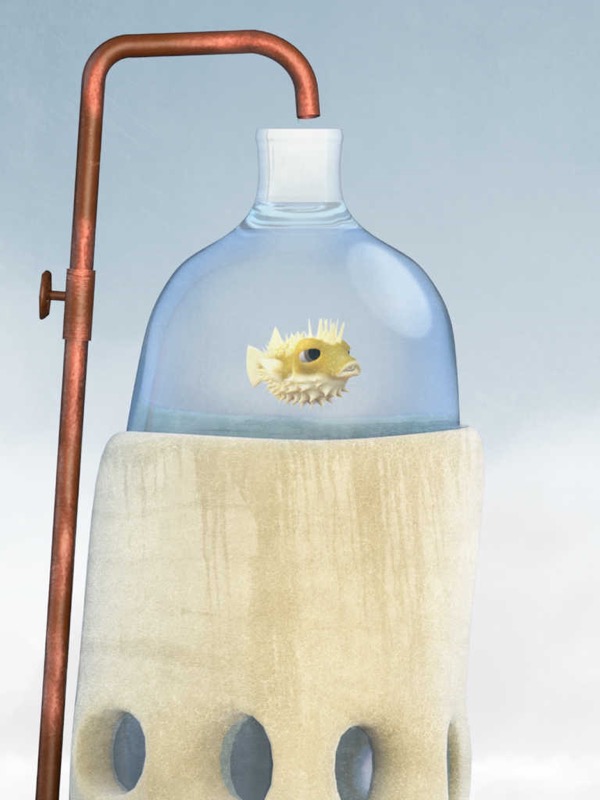 Die Geschichte von Flewn ist eine tragische: Man begleitet einen alten Wal, der seinen Ozean verloren hat, auf seiner anstrengenden Reise auf Stelzen durch eine nicht enden wollende Wüste. Auf seinem Rücken trägt er zudem weitere Freunde, Meeresbewohner, die er in Gläsern vor dem sicheren Tod gerettet hat. Ein wenig mutet diese Konstellation an die biblische Geschichte der Arche Noah an – jedoch wird das Unternehmen des Wals und seiner Begleiter auf eine Probe gestellt, als sie einem gigantischen, unüberwindbaren Berg gegenüber stehen.