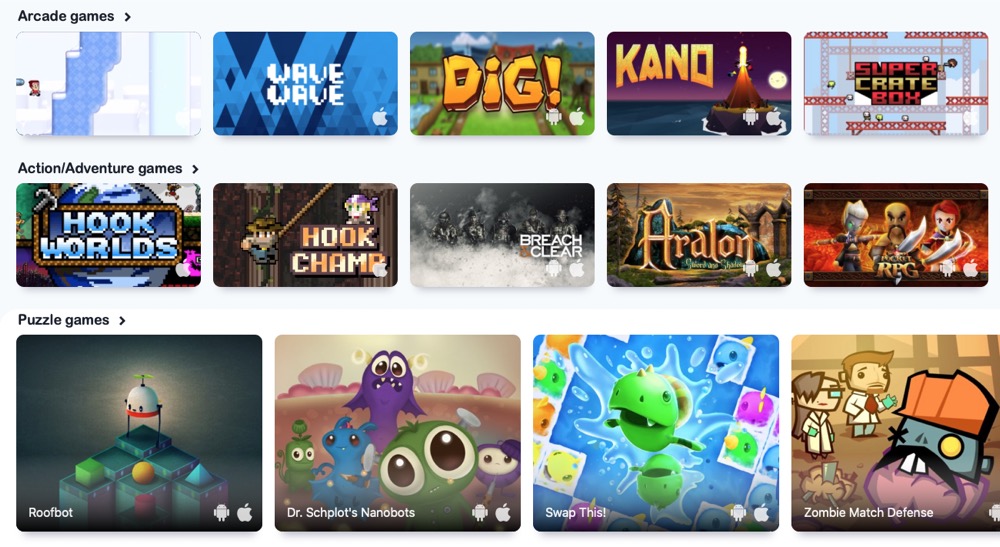 Unter iOS gibt es bei GameClub beispielsweise Spiele wie Plunderland, den Retro-Arcade-Platformer Super Crate Box, das Adventure-Game Aralon, das Puzzle The Heist, die Simulation Flick Fishing Redux oder das RPG Monster Wars. Eine komplette Liste aller Titel für iOS findet sich auf der Website der Entwickler.