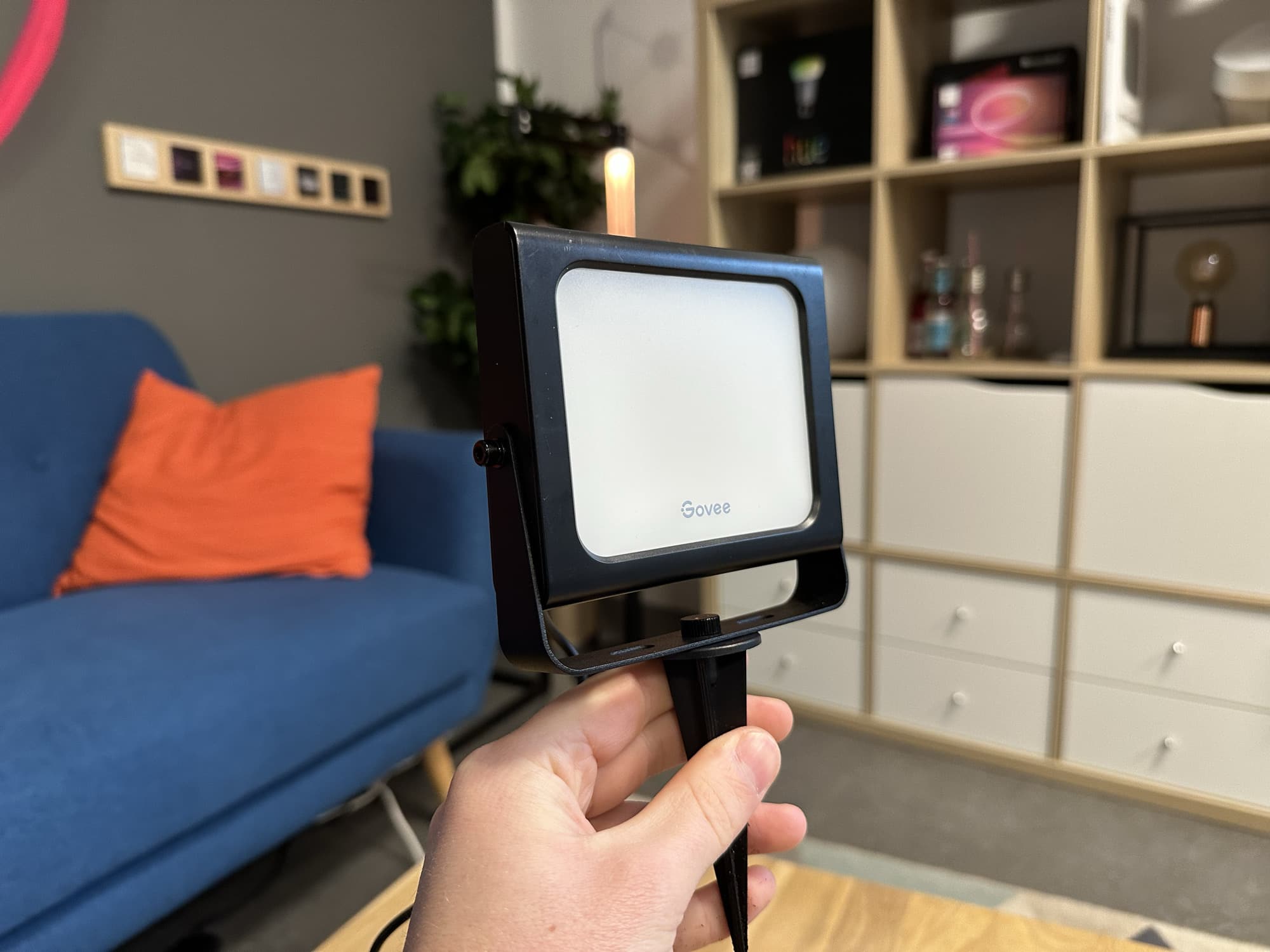 Die Installation ist generell sehr simpel. Das Kabel könnt ihr einfach auf dem Untergrund liegen lassen, wer möchte, kann dieses aber auch unterirdisch verlegen. Natürlich lassen sich die Govee Flutlichter auch im Innenbereich einsetzen, allerdings fehlt hier eine Befestigungsmöglichkeit. Der Erdspieß ist Indoor wohl nur bei Pflanzen einsetzbar.