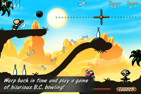 Fangen wir mit Cave Bowling an. Die Retina optimierte Universal-App ist nur 8 MB groß und kann auf iPhone und iPad installiert werden. Mit dem Bowler muss eine Bowling-Kugel so geworfen werden, dass am Ende all Pins umfallen. Dazu stellt man den Abwurfwinkel ein und danach bahnt sich die Kugel ihren eigenen Weg.