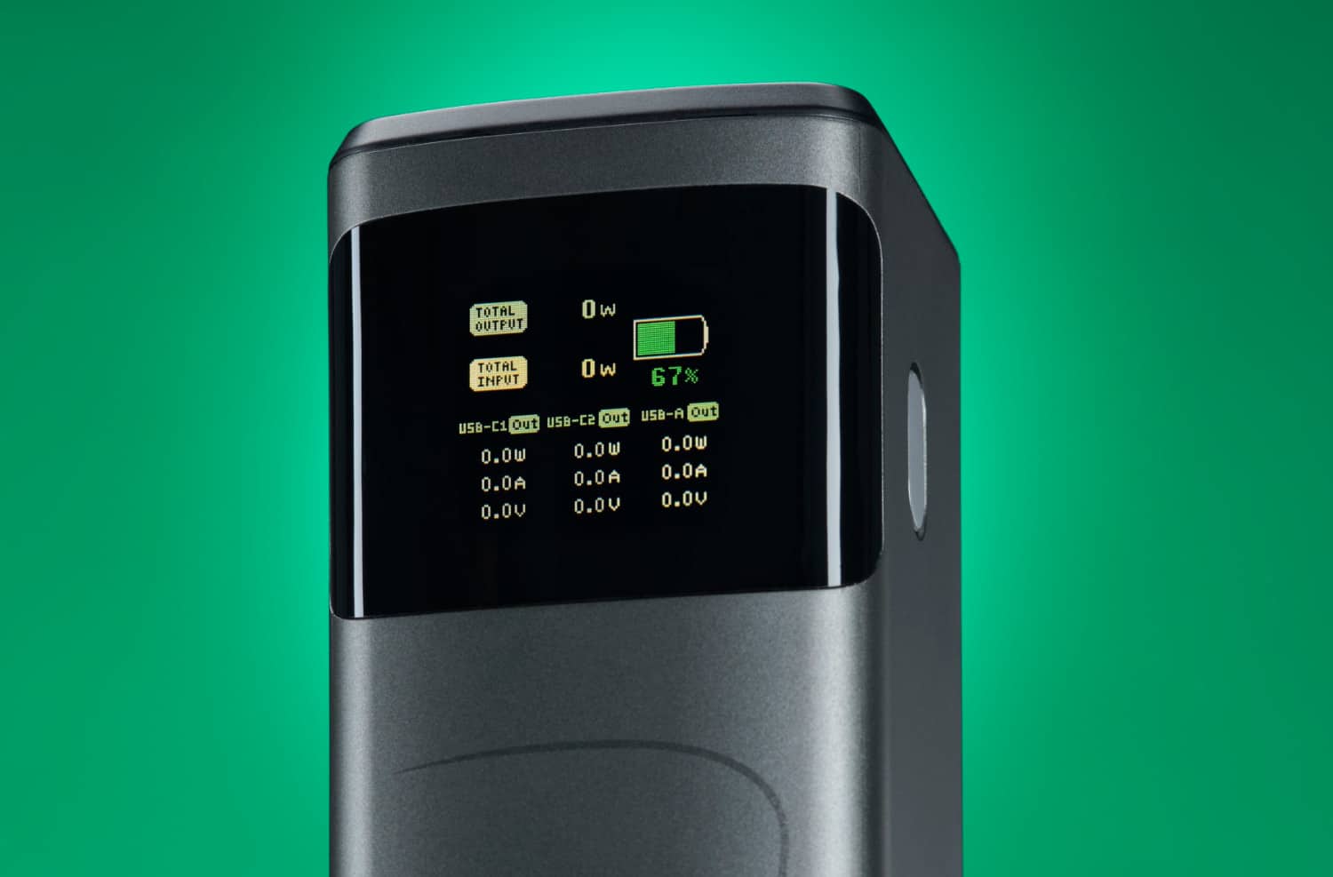 Ein Farbdisplay zeigt genau an, was an Energie rausgeht und was noch da ist. In Prozent bekommt man die Info, wieviel Akkukapazität noch im Power Pack selbst steckt. In Watt zeigt das Display an, wie hoch die Ausgangsleistung der einzelnen Ladebuchsen sowie die Gesamtleistung ist. So kann man die Ladung für die eigenen Geräte unterwegs genau planen und jedem der Geräte ausreichend Energie liefern. Die Powerbank kann außerdem aufgeladen werden, während man gleichzeitig die Geräte lädt, und Schnelllade-Technologien wie Power Delivery und Qualcomm Quick Charge 3.0 garantieren extrem schnelles Aufladen.