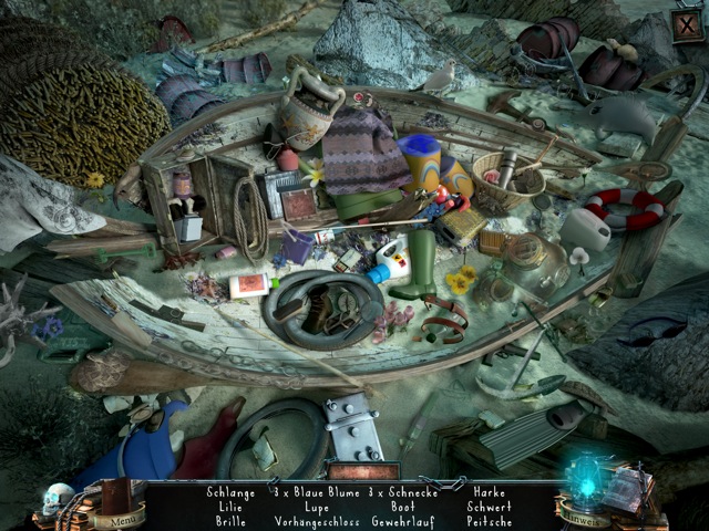Neueinsteiger, die diese Art von Spielen bislang noch nicht getestet haben, finden zu in Haunted House Mysteries zu Beginn außerdem ein kleines In-Game-Tutorial, in dem die wichtigsten Aktionen beschrieben werden. Weiß man auch als Wimmelbild-Profi einmal nicht weiter, hilft eine kleine Hinweis-Funktion, über die versteckte Objekte in den Bildern oder der nächste Schritt angezeigt werden können. Allerdings stehen diese Hinweise immer nur alle paar Minuten zur Verfügung. Auch bei den Rätseln verhält es sich ähnlich: Steckt man fest, muss man nur abwarten, bis sich eine Zeitanzeige gefüllt hat, dann lässt sich das Puzzle überspringen.