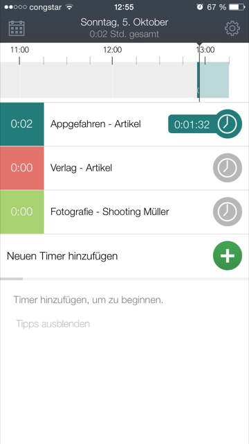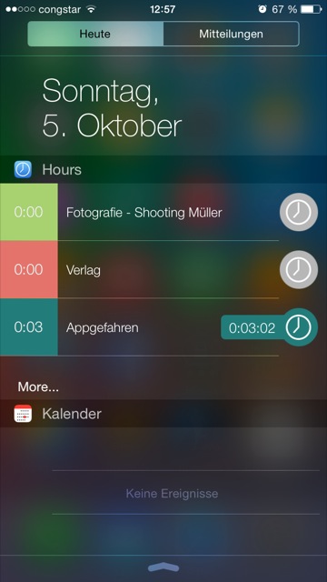 In der neuen Version 1.1.2, die am Mittwoch der letzten Woche den deutschen App Store erreicht hat, haben die Developer auch ein praktisches Widget, das sich in der Mitteilungszentrale aktivieren lässt, eingepflegt. Dank dieser Maßnahme ist es nun nicht mehr notwendig, die App öffnen zu müssen, um einen Timer zur Zeiterfassung zu starten oder anzuhalten – dieses Feature funktioniert sogar vom Sperrbildschirm aus.
