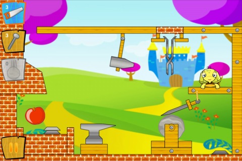 Da sich die Schildkröte teils nicht von selbst bewegen kann, muss man mit herab zu werfenden Kisten oder Steinen nachhelfen, sie anzuschubsen. Die Nägel dienen dazu, beispielsweise lose Bretter in einem bestimmten Winkel fest zu nageln, um die Schildkröte auf den richtigen Weg zu bringen. Das letzte Werkzeug, die Säge, kann mit einem Fingerwisch Bretter durchschneiden, um etwa den Weg für das Tierchen frei zu machen. Pro Level stehen dem Gamer immer eine bestimmte Anzahl der Werkzeuge zur Verfügung, mit denen das Level absolviert werden muss.