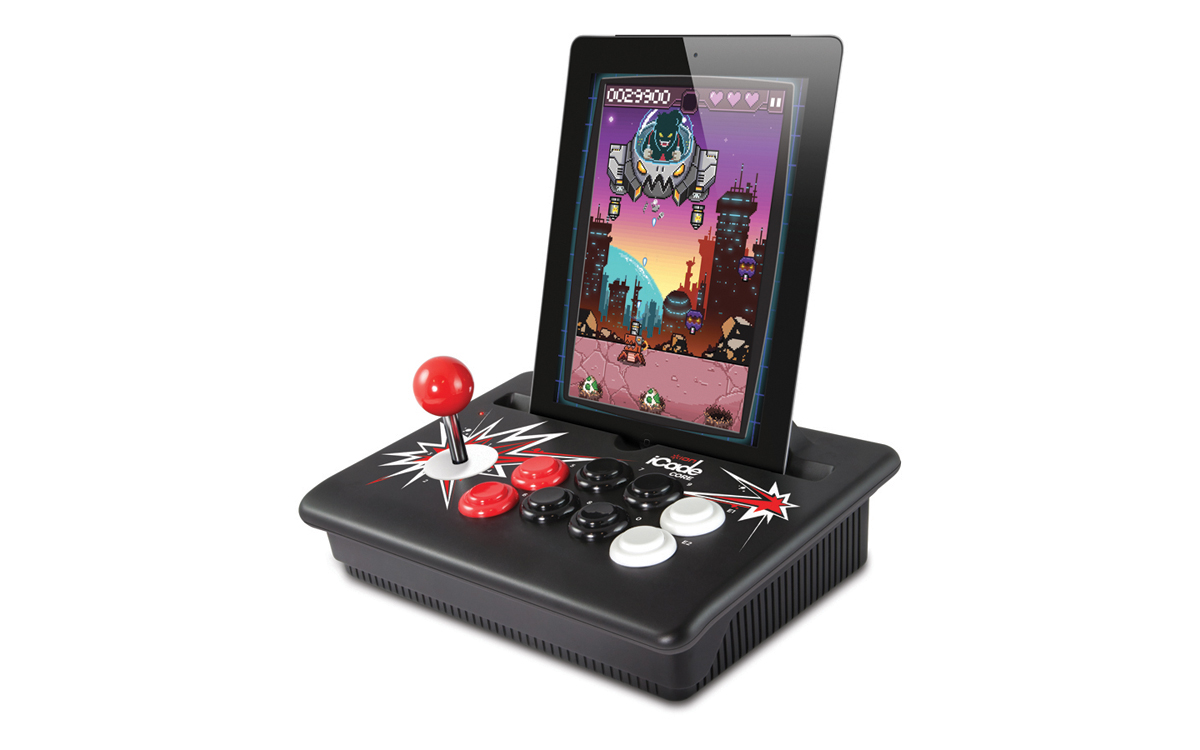 Das iPad wird dazu einfach in den iCade gedockt, die Verbindung wird per Bluetooth aufgebaut. Mit einem Joystick und verschiedenen Knöpfen kann man dann seinen Helden über das Display schicken, so wie in alten Zeiten.