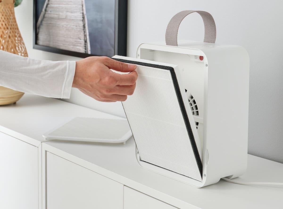 Die Neuheit ist für kleinere Räume von 7 m² Größe optimiert, in denen er die Luft fünfmal pro Stunde reinigt. Mit längerer Reinigungszeit kann der Luftreiniger aber auch in größeren Räumen zum Einsatz kommen. Der UPPÅTVIND Partikelfilter ist optimiert, um mehr als 99,5 Prozent der in der Luft befindlichen Partikel wie Staub und Pollen bis Partikelgröße PM 2,5 zu absorbieren. Eine LED-Anzeige am Gerät zeigt an, wenn die Filter verschmutzt sind – der Vorfilter kann ganz einfach gereinigt werden und für den Partikelfilter wird empfohlen, nach maximal sechs Monaten einen Austausch vorzunehmen. Der Ersatzfilter kostet 5 Euro.