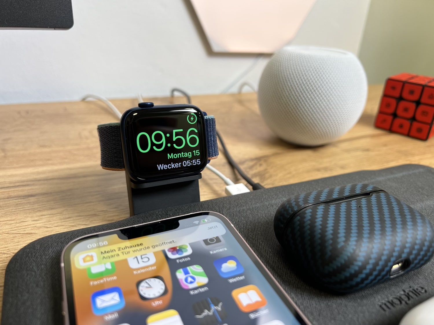 Die Mophie 4-in-1-Ladematte macht genau was sie soll: Sie lädt bis zu fünf Geräte zuverlässig auf. Die Verarbeitung ist gut, allerdings hätte ich mir gewünscht, dass man hier auf USB-C statt auf USB-A gesetzt hätte. Vor allem gibt es bei der neuen Apple Watch 7 nur noch ein Ladekabel mit USB-C dazu. Hier müsste man also auf ein altes Kabel zurückgreifen und verliert so die Schnellladefunktion bei der Watch 7.