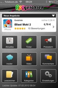 Fangen wir zunächst einmal mit einem Tipp zur Optimierung der Ladezeiten an. In den iOS-Einstellungen könnt ihr unter Apps -> appgefahren die Optionen Ticker und Insider deaktivieren, falls ihr diese Neuigkeiten nicht automatisch laden oder in der Newsbox lesen wollt. Die Ladezeiten im Hauptmenü sind dann etwas geringer, die entsprechenden Menüpunkte lassen sich aber weiterhin manuell aufrufen.