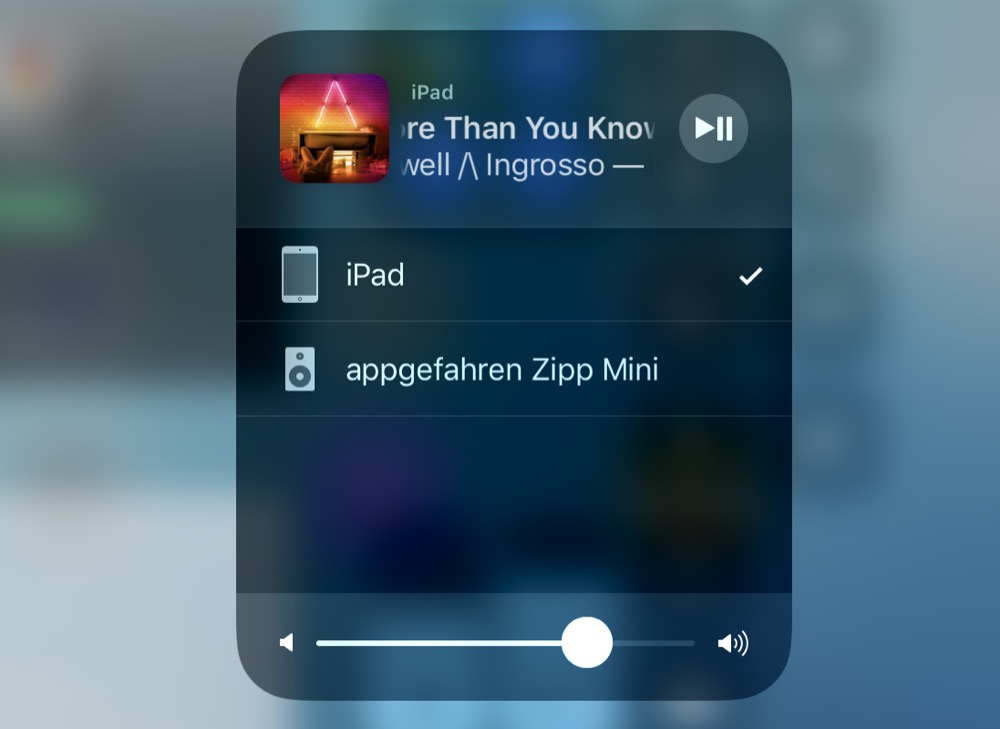 Kontrollzentrum: Die Musiksteuerung im Kontrollzentrum wurde leicht überarbeitet. Ein kleines Symbol in der oberen rechte Ecke verweist jetzt auf die verfügbaren AirPlay-Optionen.