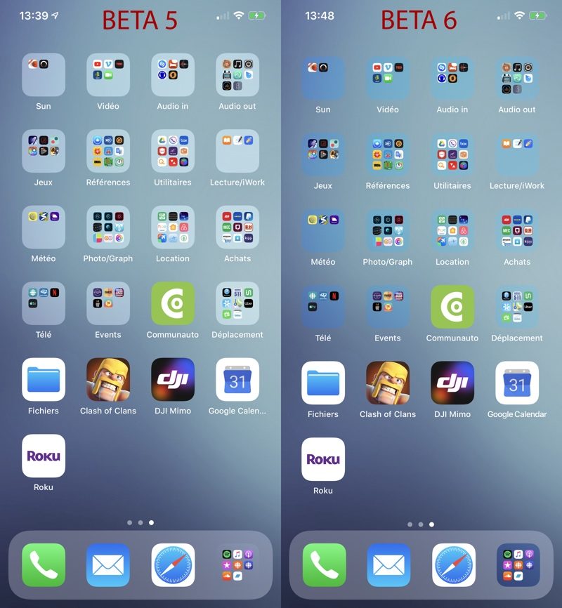 Eine Änderung auf dem Homescreen betrifft die Darstellung von Ordnern. Während diese bisher einen relativ hohen Kontrast hatten, orientieren sie sich farblich nun eher in Richtung Hintergrundbild. Auf dem folgenden Foto könnt ihr den Unterschied recht deutlich erkennen.