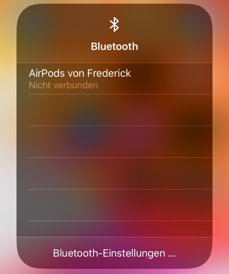 Das ganze funktioniert mit Bluetooth sehr ähnlich. Ihr öffnet auch hier das Kontrollzentrum, klickt euch weiter und öffnet dann mit einem langen Klick die Bluetooth-Einstellungen direkt im Kontrollzentrum. Hier könnt ihr euch schnell mit einem anderen Bluetooth-Gerät verbinden. Von hier aus gibt es zudem einen Sprung in die Einstellungen-App.