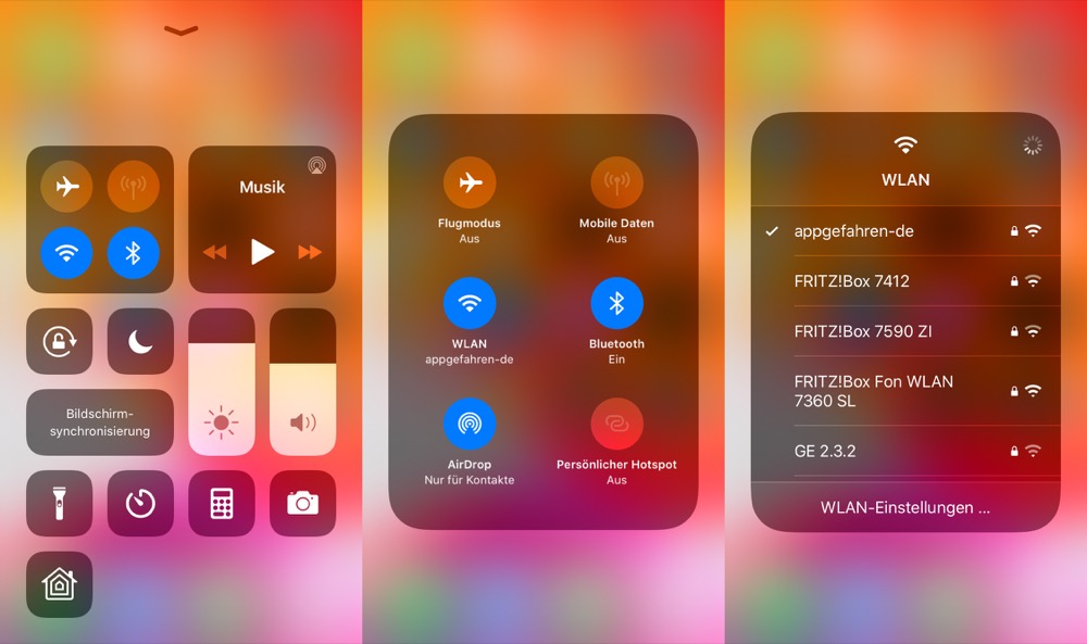 Aber man ist jetzt mit einem „Tap“ direkt in den WLAN-Einstellungen – damit kann ich sehr gut leben; und die Möglichkeit, das WLAN direkt vom Kontrollzentrum aus zu wechseln, ist klasse!