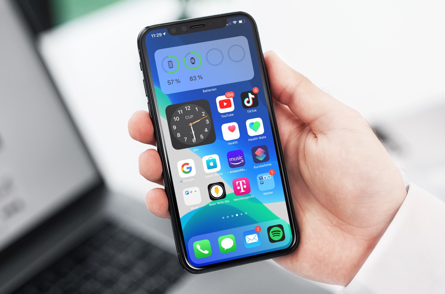 Falls ihr euer iPhone wieder mit einer Hand besser bedienen wollt, macht euch die neuen Widgets in iOS 14 zunutze. Die Widget-Auswahl ist aktuell noch begrenzt, wer allerdings die vorhandenen Widgets am oberen Displayrand platziert und darunter die Icons anordnet, erreicht diese komfortabel mit dem Daumen. Hier finde ich zum Beispiel das Akku-Widget ganz praktisch, da dieses beim Klick keine Aktion auslöst und lediglich der Information dient. Gleiches gilt für das Uhr-Widget. Wenn Widgets nicht oft angeklickt werden, kann man sie super mit anderen Apps auf einer Homescreen-Seite für eine Einhandbedienung kombinieren.