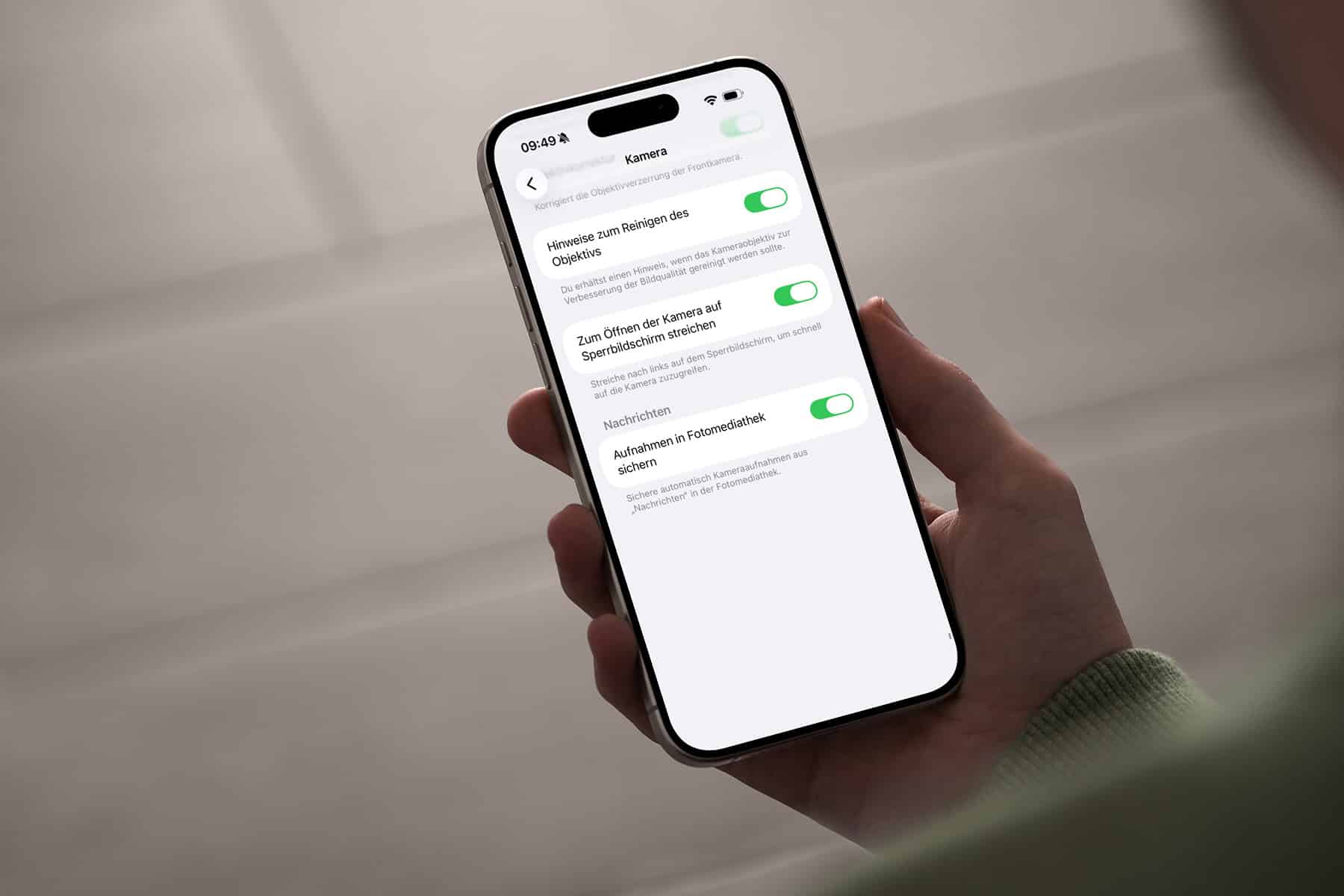 In der Einstellungen-App gibt es unter dem Punkt „Kamera“ die neue Option „Zum Öffnen der Kamera auf Sperrbildschirm streichen“. Wird diese deaktiviert, verschwindet auch die Funktion, mit der sich die Kamera durch ein Wischen nach links starten lässt.