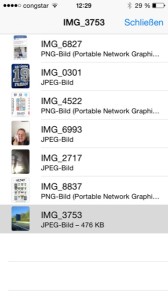 Um diese Funktion nutzen zu können, sucht man einfach ein Bild aus dem Nachrichtenverlauf und öffnet es. Dann drückt man einfach unten rechts (auf dem iPad oben links) auf das Listensymbol und bekommt eine Auflistung aller empfangenen und selbst versendeten Videos, um diese weiterleiten oder speichern zu können. Achtung: Das Icon taucht erst auf, wenn mindestens zwei Bilder im Nachrichtenverlauf enthalten sind.