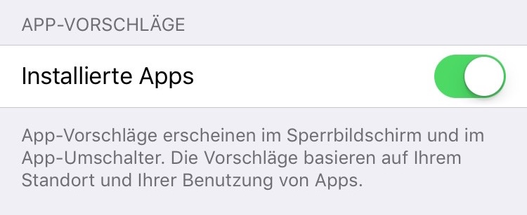 Dieses Feature hört auf den Namen „App-Vorschläge“, die von Apple im Sperrbildschirm und im App-Umschalter (Multitasking) angezeigt werden können. „Die Vorschläge basieren auf Ihrem Standort und Ihrer Benutzung von Apps“, schreibt Apple selbst.