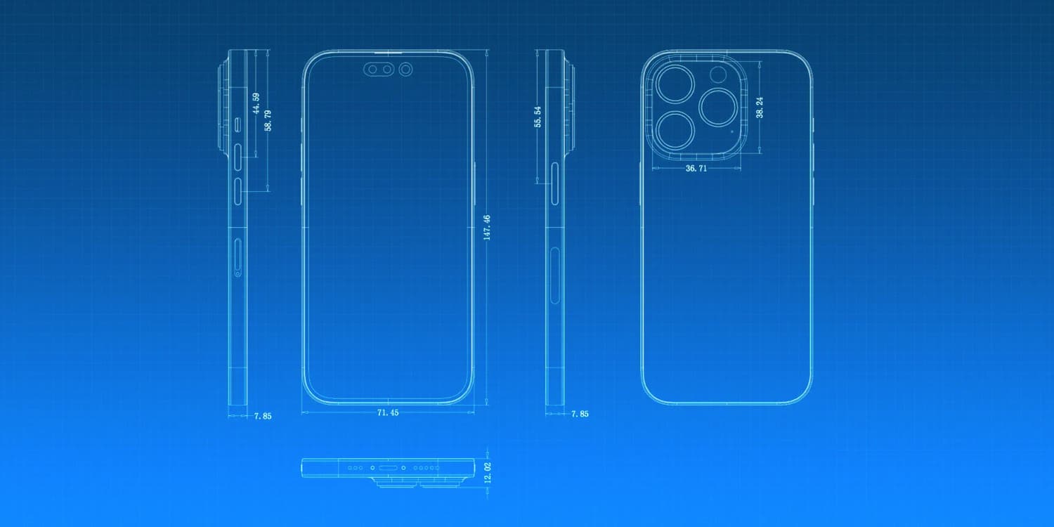 Die schematischen Zeichnungen zeigen beim iPhone 14 Pro Max eine Breite von 77,58 Millimeter, das ist etwas weniger als beim jetzigen Modell (78,1 Millimeter). Zudem wird das iPhone minimal schmaler, statt 160,8 Millimeter werden hier 160,7 Millimeter angegeben.