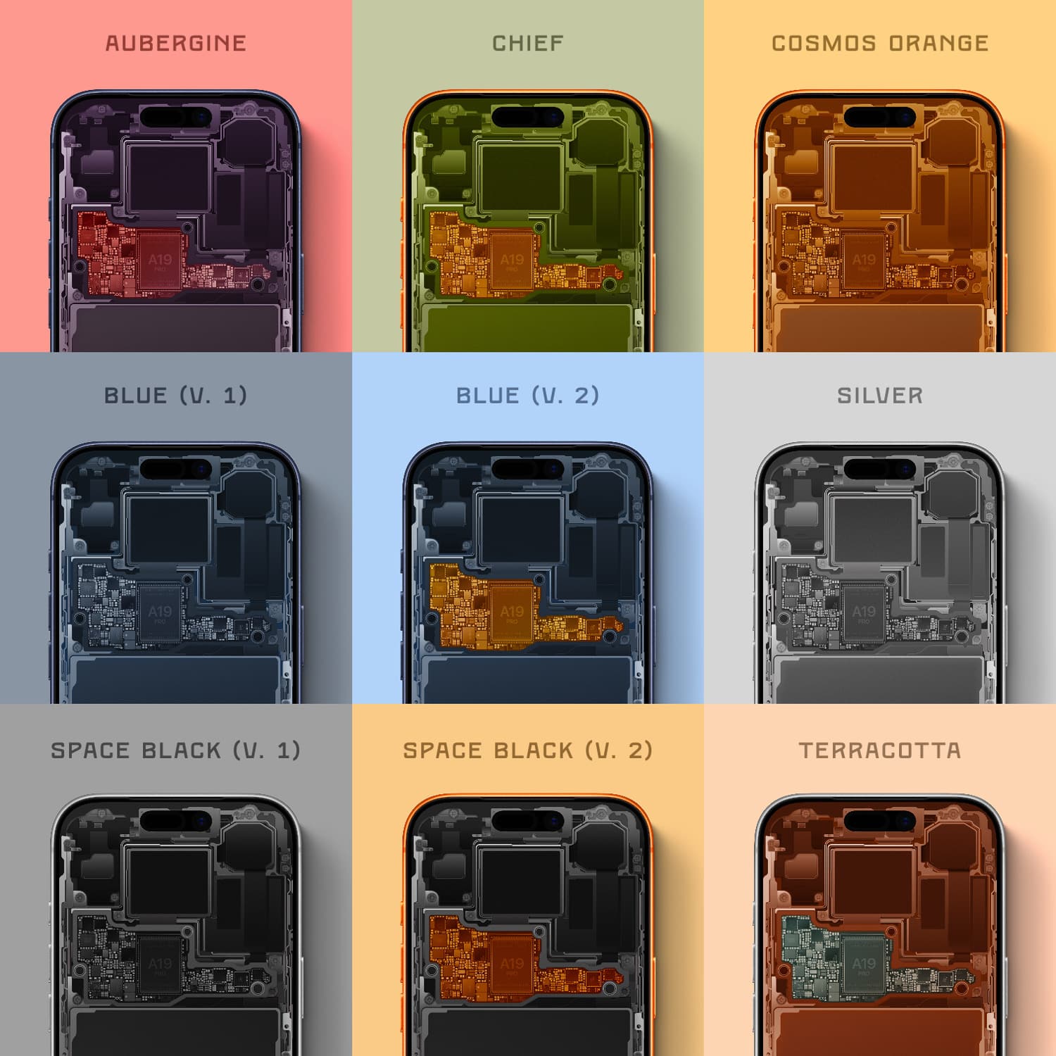 Während die letzten Wallpaper eher dunkel und einheitlich gestaltet waren, gibt es in diesem Jahr etwas mehr Kontrast und Highlights. Das Logic-Board mit dem neuen A19-Pro-Chip sticht besonders hervor, da dieser eine andere Farbe hat. Wer diesen Stil nicht mag, kann aber auch das klassische Wallpaper wählen, das in den Farben Violett, Grün, Orange, Blau, Silber, Space Black und Terracotta verfügbar ist.