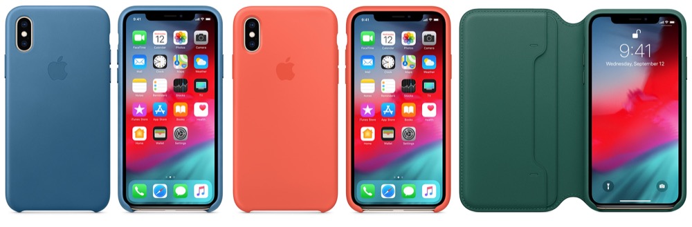 - iPhone Xs Leder Folio in Pfingstrosenpink, Cape Cod Blau, Waldgrün, Schwarz und Rot für je 119 Euro.