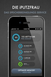 Update: Da haben wir ja eine lange Diskussion angefechtet.. Nachdem uns einige Nutzer darauf aufmerksam gemacht haben, wie die App anscheinend zu funktionieren scheint, wollen wir noch kurz den Artikel ergänzen. Andreas hat es gut erklärt und wir möchte es hier festhalten: „Wenn die iPutzfrau eine größere Speicherlast vortäuscht kann Sie damit iOS veranlassen den Cache zu leeren. Damit wird der Start der der nächsten Apps unmerklich verlangsamt. Die Anwendungen die nach dem putzen gestartet werden, haben aber mehr Arbeitsspeicher zu Verfügung und laufen schneller. Dieser Effekt läuft nach einiger Zeit aus, da die Caches wieder gefüllt werden. Dies verlangt keinerlei “tiefe Eingriffe” sondern nur sehr gekonntes ausnutzen der vorhandenen Resourcen.“ Kurz und knapp bedeutet es folgendes: Es werden solange Daten in den Speicher geschrieben bis es zu einer Zwangsaufräumung kommt und dabei werden alle unnötigen Daten gelöscht. Doch den gleichen Effekt kann man auch mit einem Neustart erzielen. Wer es also bequem möchte, kann die 79 Cent ausgeben, wer sowieso sein iPhone regelmäßig neustartet kann das Geld lieber wo anders anlegen.