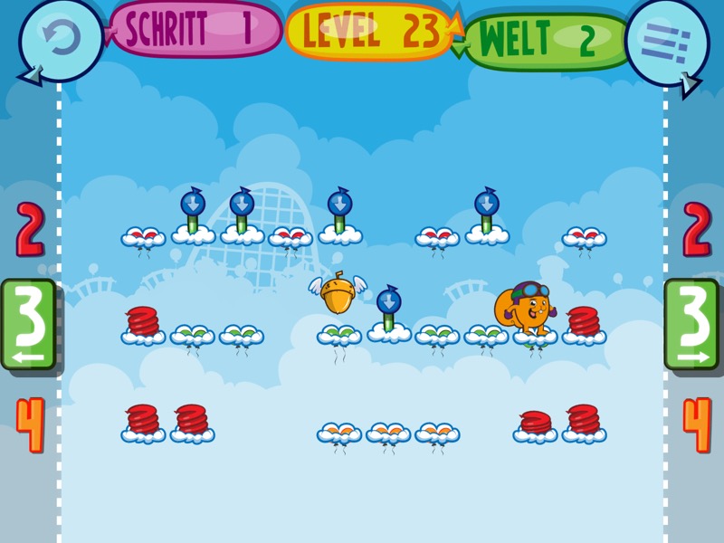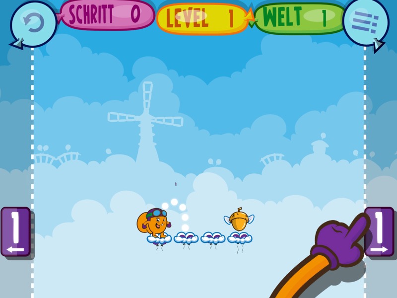 Wie viele Schritte Jake in eine Richtung macht, hängt davon ab, auf welcher Wolke er sich gerade befindet. Am Bildschirmrand wird jeweils angezeigt, wie viele Wolken Jake auf einmal überspringt. Manchmal ist es nur eine, manchmal zwei und ab und zu sogar drei oder vier auf einen Schlag. Das Ziel erreicht man nur dann auf dem kürzesten Weg, wenn man vorausschauend handelt und nicht den falschen Weg einschlägt.
