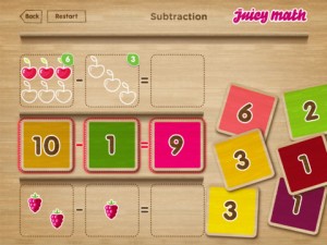 Das 79 Cent teure Juicy Math (App Store-Link) ist Ende Juni erschienen und hat Anfang der Woche bereits ein erstes Update erhalten, mit dem es zur Universal-App geworden ist. Laut Beschreibung richtet sich der knapp 60 MB große Download an Kinder im Alter von 4 bis 10 Jahren, wir würden das ganze eher auf 4 bis 7 Jahre reduzieren.