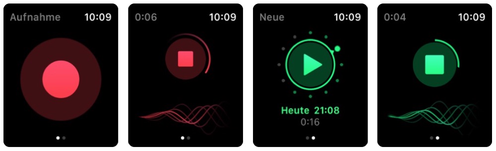Wer sein Mikrofon immer dabei haben will, kann auf eine Apple Watch-App zurückgreifen, mit der sich unabhängig vom iPhone ebenfalls Aufnahmen vom Handgelenk aus anfertigen und auch anhören lassen. Diese landen später synchronisiert in einem eigenen Ordner in der iOS-App. Besonders praktisch: Just Press Record verfügt über ein Transkriptions-Feature, um Audio-Aufnahmen in Text umzuwandeln. Dazu wird die Aufnahme an Apple geschickt, dort analysiert und der Text nach kurzer Zeit zusätzlich zur Aufnahme in Just Press Record bereitgestellt. Die Anwendung unterstützt mehr als 30 Sprachen, ganz unabhängig von den Spracheinstellungen des Geräts, und erlaubt es zudem, die Transkription nachträglich zu bearbeiten. Letztere kann auch inklusive Audio-Datei oder separat weitergeleitet werden, beispielsweise per Mail.