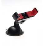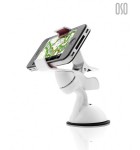 Die KFZ-Halterung ist dabei in zwei Teile zerlegbar, die durch ein Kugelgelenk getrennt sind, mit dem man sein iPhone um 360 Grad drehen kann. An dieser Stelle gibt es ein kleines Rädchen zur Fixierung. Am unteren Rand befindet sich kein eigentlicher Saugnapf, sondern eine gummiartige Oberfläche, die auf jeglichen Oberflächen haften soll. Sucht man sich nun den passenden Platz im Auto aus, geeignet ist das Armaturenbrett oder die Windschutzscheibe, kann man die Halterung mit einem kleinem Hebel feststellen.