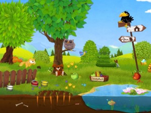 Im Obstgarten gibt es viele Dinge zu entdecken, die App unterteilt sich dabei in drei Bereiche, in denen man spielen, lernen, entdecken und gestalten kann. Begleitet werden die Kinder dabei stets vom Raben Theo, der ihnen zum Beispiel die Entdeckerwelt zeigt. Hier kann man in einem großen Garten so ziemlich alles antippen und so kleine Animationen und lustige Geräusche erzeugen.