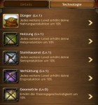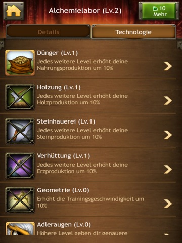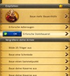 Auf der unteren Displayseite findet man seine Quests, an denen man sich entlang hangeln sollte, um im Spiel schnell fortschreiten zu können. Zusätzlich gilt es Forschung zu betreiben und Krieger auszubilden, um gegen Angriffe gewappnet zu sein. Wer sich übrigens einen Account einrichtet, kann Spielstände speichern und bekommt zusätzliche Edelsteine.