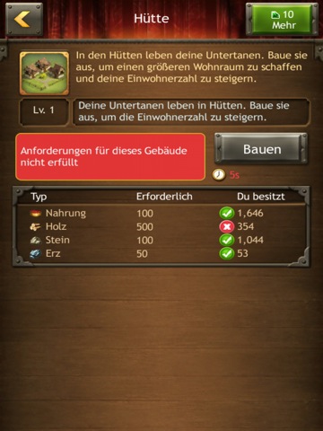 Anfangs gibt es ein ausführliches Tutorial, was in das Spiel einführt. Alles ist in deutscher Sprache vorhanden, ein paar kleine Übersetzungsfehler sind zwar vorhanden, doch da kann man getrost drüber hinweg sehen. Zu Beginn steht nur die eigene Burg im Königreich, es müssen weitere Hütten, Felder, Steinbrüche und weiteres erbaut werden. Um Gebäude errichten zu können, benötigt man natürlich Ressourcen wie Holz, Stein und Gold, die ebenfalls abgebaut werden können.