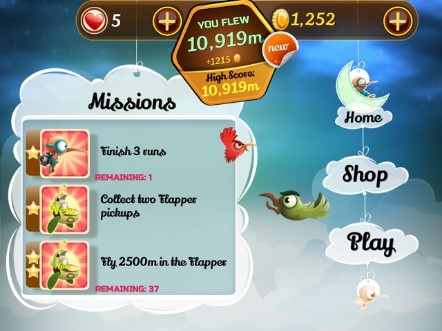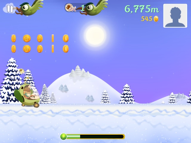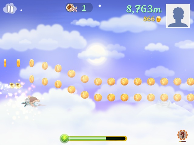 Ausgestattet mit einem kleinen Jetpack – ganz wie Barry Steakfries in Jetpack Joyride, DEM Endless Runner für iOS – katapultiert sich der Vogel also in die Lüfte und wird mit einfachen Fingertipps auf dem Screen gesteuert. Hält man den Finger auf dem Bildschirm, schwingt sich der Kiwi höher in die Luft, lässt man los, sinkt er wieder nach unten. Auf diese Weise gilt es, möglichst weit voran zu kommen, ohne gegen feindliche Vögel zu stoßen, mit spitzen Stacheln Kontakt aufzunehmen – und gleichzeitig auch noch überall verteilte Münzen aufzusammeln. Zwischendurch kann der Vogel auch auf kleinen Plattformen oder dem Boden laufen – aber auch hier ist man nicht vor Gefahren sicher.