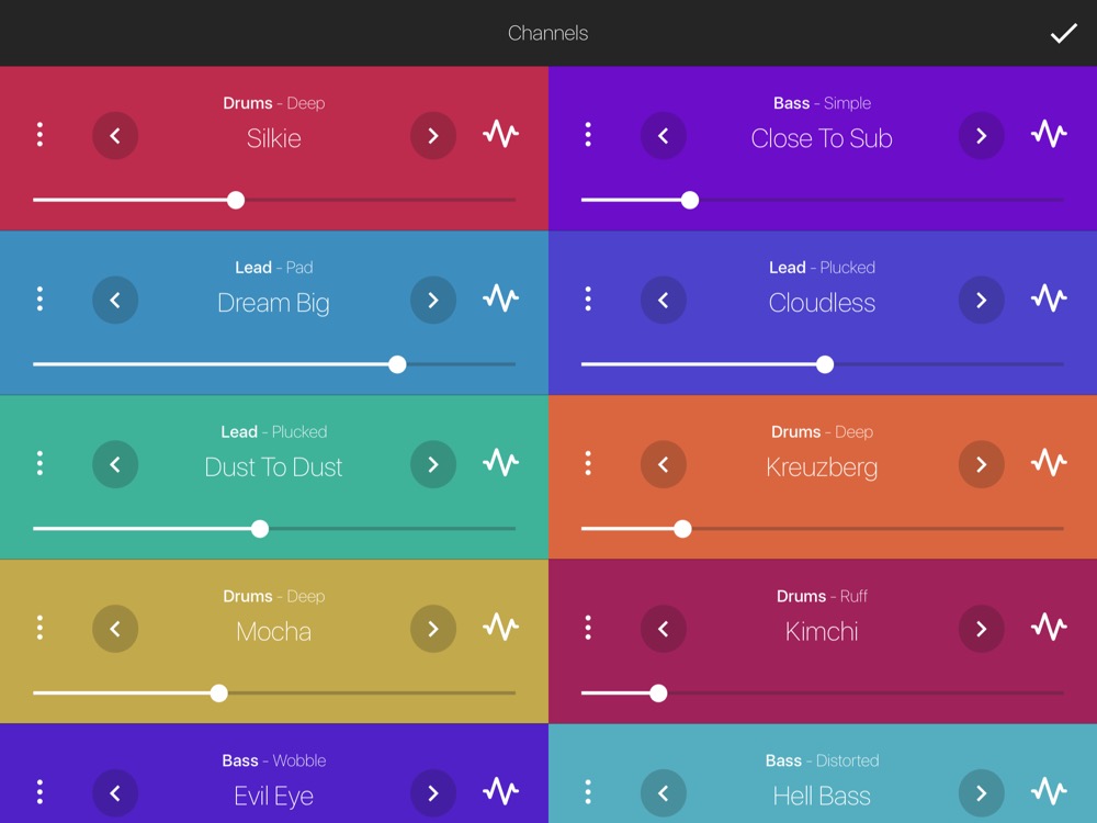 Das Tempo, die Tonart und Skala können zudem in den Einstellungen justiert werden, die Sounds der Instrumente lassen sich in einem eigenen Mixer-Menü nach eigenen Präferenzen anpassen. Filter und Effekte sorgen darüber hinaus für einen eigenen, personalisierten Sound, und auch einige Demo-Oberflächen lassen sich laden, falls man sich für spätere Projekte inspirieren lassen will. Fertige Werke, die mittels KRFT aufgenommen worden sind, werden in der App gespeichert und lassen sich auch weiterleiten.