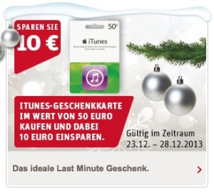 Was wären wir ohne reduzierte iTunes-Karten? Quasi im Wochentakt wollen die Händler zahlungskräftige Apple-Kunden in ihre Filialen locken, so auch REWE. Vom 23. bis zum 28. Dezember gibt es bei der Supermarkt-Kette iTunes-Karten mit Rabatt. Es sind die gewohnten 20 Prozent, die dieses Mal allerdings nur für die größte der drei Karten gilt. Statt 50 Euro zahlt man für die iTunes-Karte also nur 40 Euro.