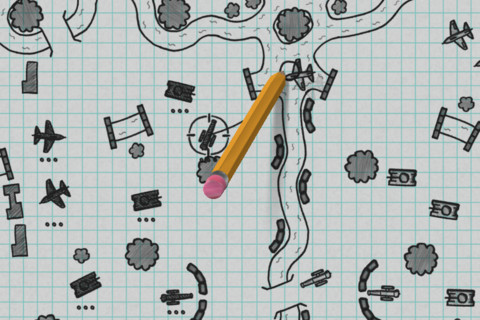 Die Steuerung ist dabei sehr trickreich. In Lead Wars muss man seinen Weg mit einem Bleistift zeichnen. Dazu wählt man sein Gefährt aus, zieht den Bleistift nach hinten und lässt ihn so umkippen, um dann möglichst den richtigen Weg zu zeichnen, indem man den Stift über das Display schiebt. Das klingt am Anfang echt kompliziert, bei den ersten Versuchen wird man kläglich scheitern, doch wenn man den Dreh raus hat, kann man seine Flotte und Artillerie gut über das Spielfeld steuern.