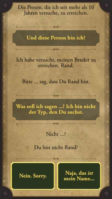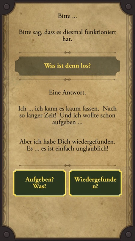 Auf diese Art und Weise entsteht ein zunächst seltsames, aber von mir im ersten Teil des Spiels als sehr fesselnd empfundenes Gameplay, das den Spieler teils mit der Figur mitleiden und voller Spannung auf den nächsten Schritt bzw. die nächste Nachricht warten lässt. Je nachdem, welche Antworten man gibt, verändert sich der Ausgang der Geschichte – es sind also mehrere Enden möglich.