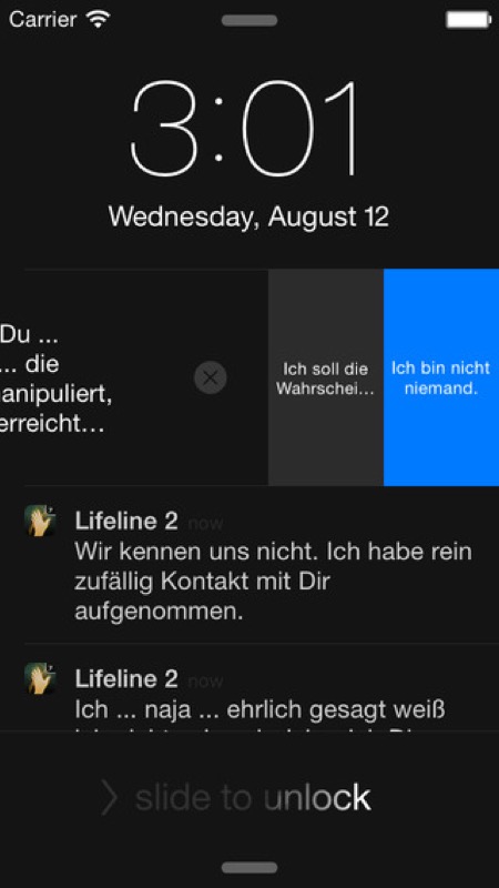 Lifeline 2 (App Store-Link) ist als Universal-App für iPhone und iPad im deutschen App Store erschienen und lässt sich dort zum Preis von 2,99 Euro herunterladen. Das etwa 62 MB große und ab iOS 8.0 nutzbare Spiel steht, anders als im App Store angegeben, auch in deutscher Sprache bereit und verfügt zudem über eine Apple Watch-Anbindung, um Benachrichtigungen auch dort empfangen und beantworten zu können.