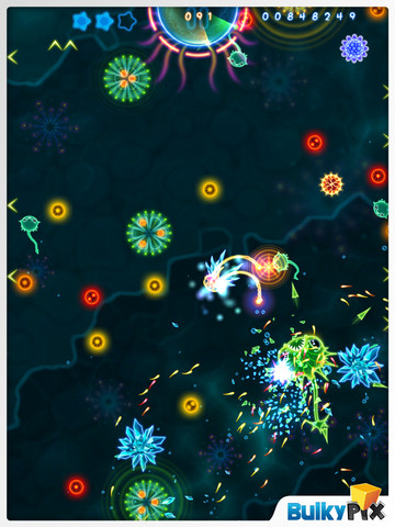 Wenn man die geforderte Anzahl der Bulbies gesammelt hat, schwimmt man zum Rand der Zone und kann dort mit einem schnellen Fingerwisch fliehen, um die Bulbies endgültig in Sicherheit zu bringen. Wer dabei noch Sterne eingesammelt hat, bekommt einen Bonus gutgeschrieben. Damit man nicht zu schnell alle Leben verliert, gibt es in den Zonen Extras, mit denen man die Gegner leichter töten kann. Mir persönlich gefällt Lightopus richtig gut. Im Anschluss gibt es einen kurzen Trailer (YouTube-Link) zur App.