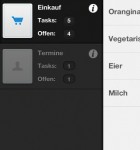 Die Listen verfügen auch über einen Filter, bei dem bei Bedarf die erledigten Einträge ein- oder ausgeblendet werden können. Weiterhin können für jede Liste spezifische Symbole ausgewählt werden, so dass man sofort weiß, worum es sich handelt, beispielsweise Arzttermine, eine Einkaufsliste, oder die Erledigungen für die nächste Besprechung im Büro.