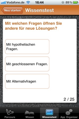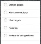 Zusätzlich kann die App mit einem eigenen Wissensbereich punkten, in denen Durchsetzungsstrategien vorgestellt werden, eine Analyse der eigenen Einstellung erfolgt und Techniken für eine kraftvolle Kommunikation aufgeführt werden. In einem Wissens-Quiz kann man dann in einem mit 25 Fragen gespickten Multiple Choice-Test seine Fortschritte überprüfen.