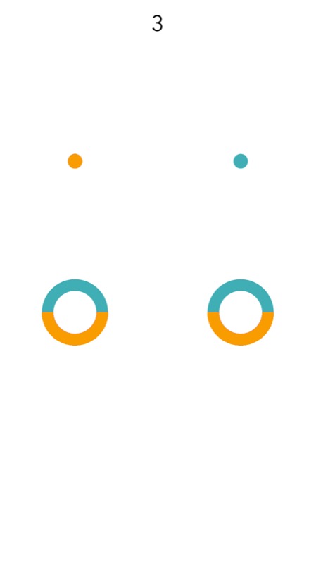 Das dahinter stehenden Prinzip ist mehr als einfach. Auf dem Display befinden sich zwei Kreise, dessen Halbkreis je türkis oder orange ist. Nun fallen von oben zwei Kugeln herab, die passend zu ihrer Farbe aufgefangen werden müssen. Die Kreise kann man je durch einen Klick drehen, so dass die richtige Farbe nach oben zeigt.